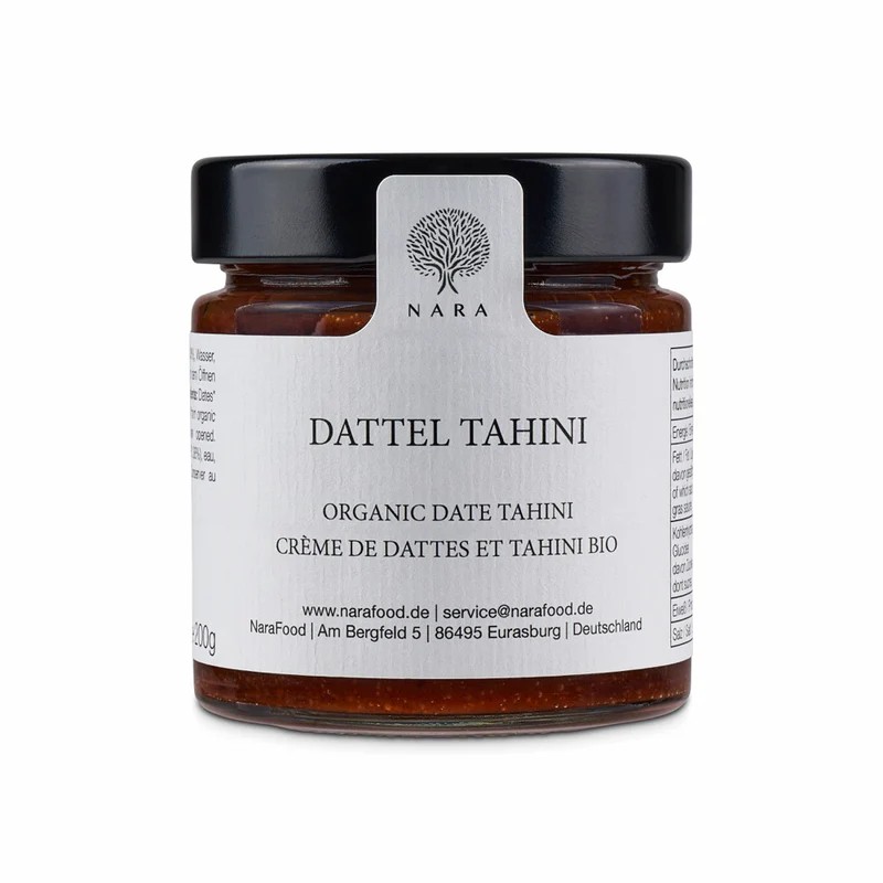 Für das Dattel Tahini Bio von NARA werden hochwertige Bio-Datteln und feinstes Sesammus sorgfältig ausgewählt und schonend verarbeitet. Die Süße der Datteln verbindet sich ideal mit dem nussigen Aroma des Sesams – ein Brotaufstrich mit Tiefe, Qualität und natürlicher Finesse.