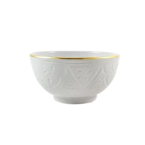 Handgemachte marokkanische Salatschüssel XL graviert mit Goldrand, Grau D25