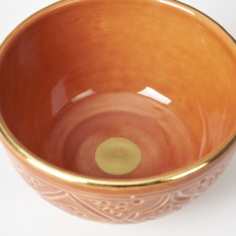 Handgemachte Schuessel / Müslischale graviert mit Goldrand, Marsala D15