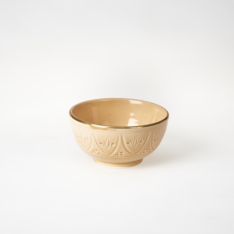 Handgemachtes marokkanisches Schälchen graviert mit Goldrand, Nude D12